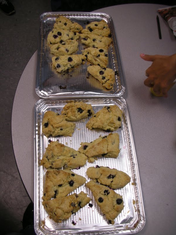 Student cake month continues and our participant chose to make some fresh scones. This was his first attempt and he had some help, apparently, from the tiramisu challenger. Inasmuch that scones themselves can be a bit of a challenge it was indeed brave of him to give them a try. These were blueberry scones but also included the traditional raisins.
